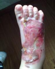 现在,让我们一起来欣赏一组深二度烧伤的图片,感受一下这种痛苦的经历。